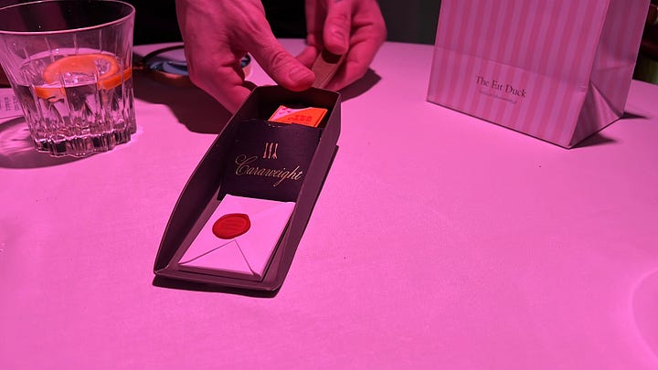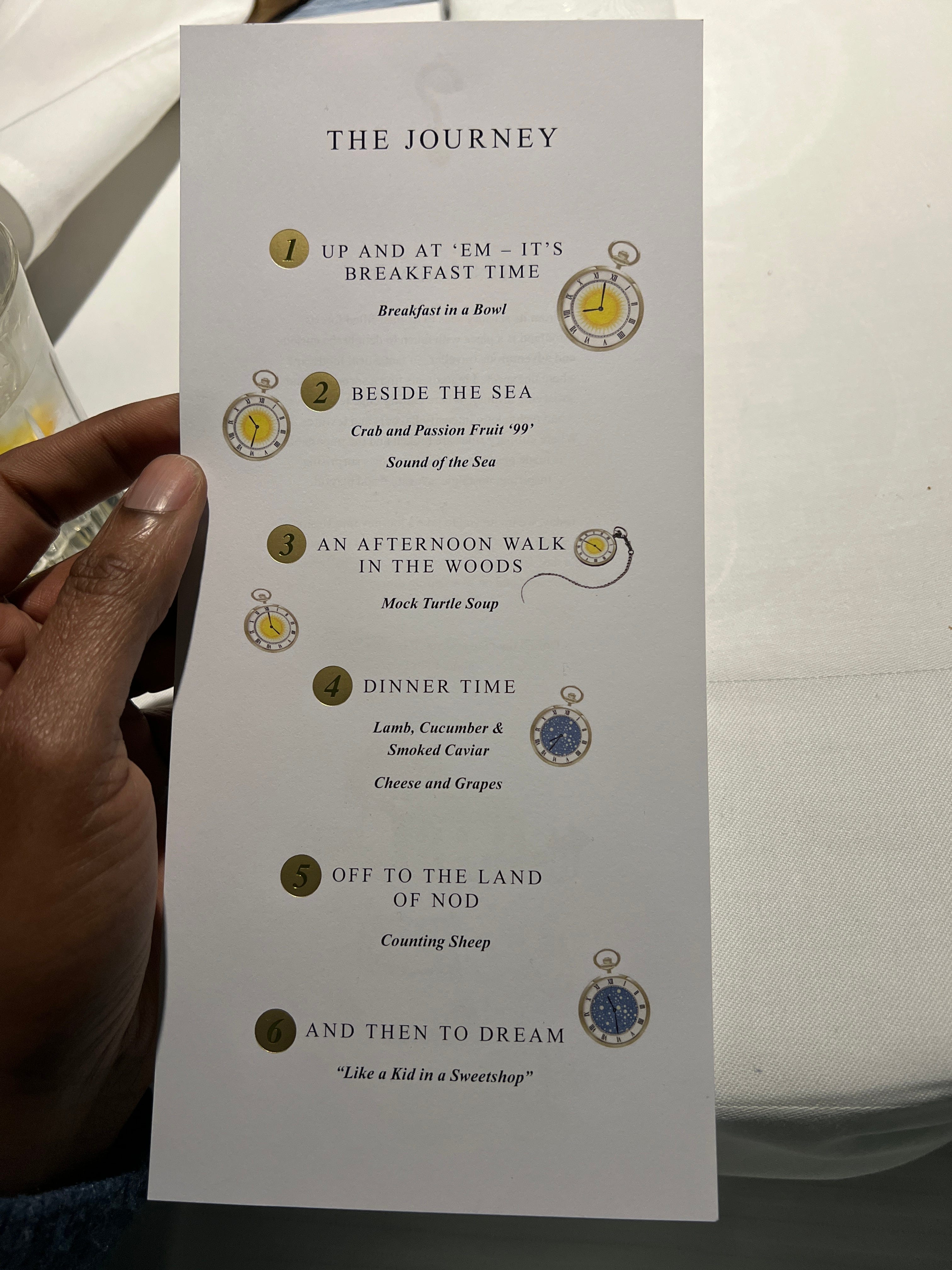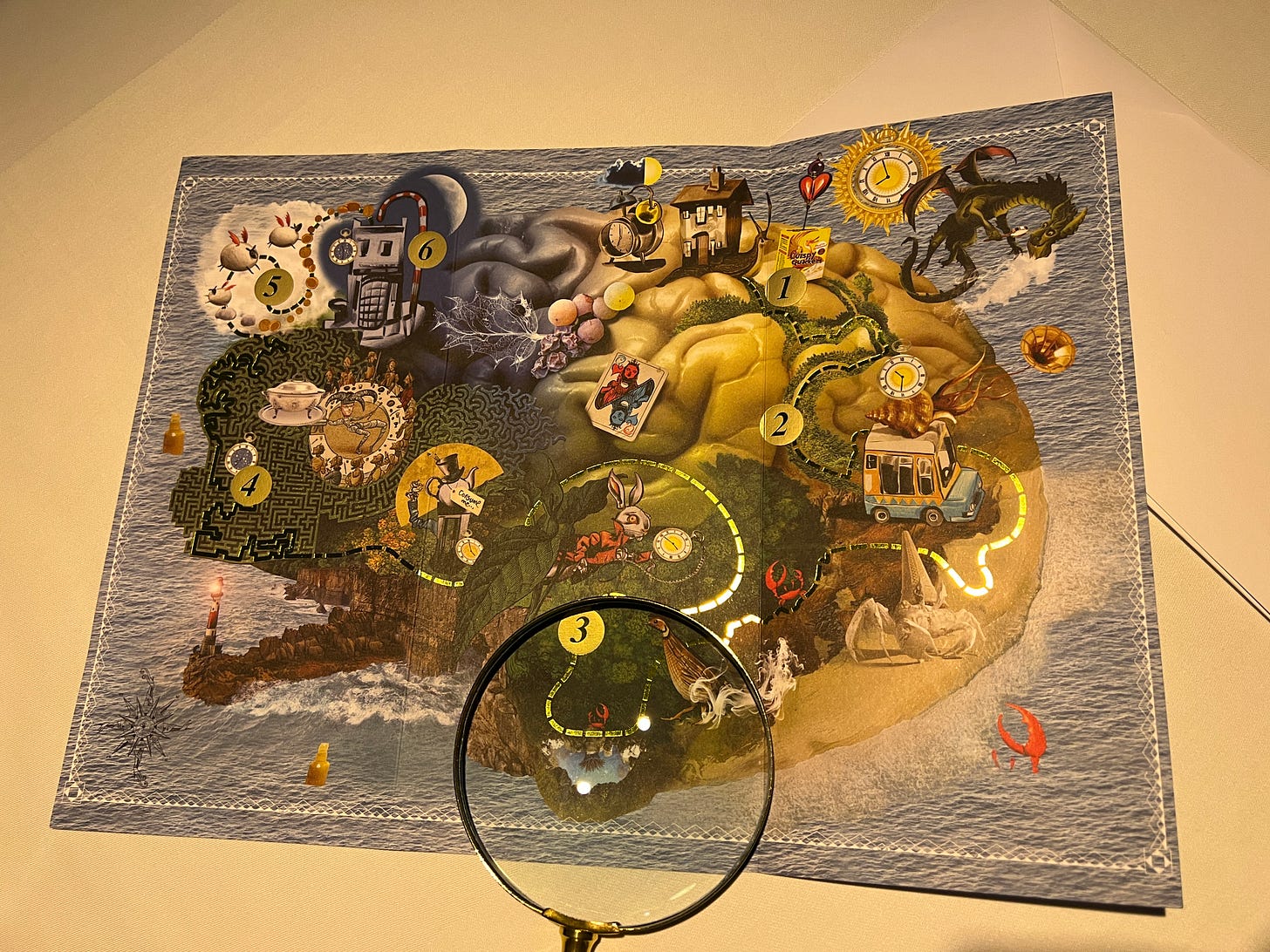 At this point, we received an envelope that I believe contained just the menu, but it had something different (remember the magnifying glass). In this envelope, there’s a map. Fictional map with the 6 courses we will get to after the amuse bouche. The map has lots of similarities with an artefact from Alice in Wonderland.