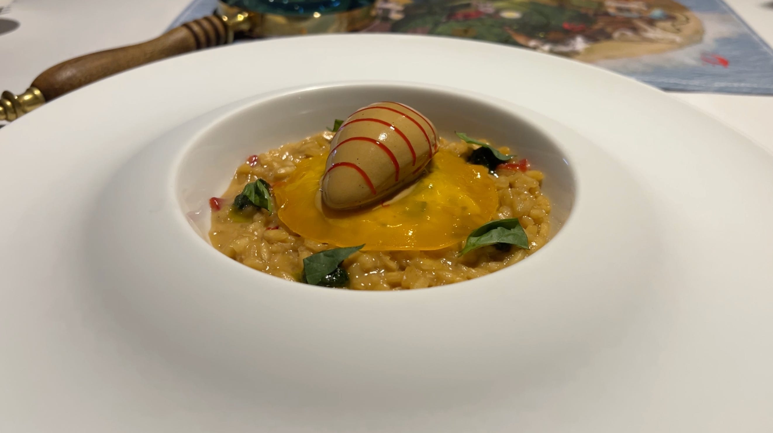 (Highlight of the night) Extra course outside of the tasting menu: I opted to supplement the tasting menu with an extra à la carte course: the crab risotto. As a great lover of risotto, I felt compelled to try Heston’s take, knowing it might be a long time before I returned to Bray. My instinct was spot on; this was the absolute highlight of the night. The unique flavor twist was achieved with crab meat at the base, a thin gelatin layer, and surprisingly, ice cream on top of the gelatin. I don’t believe text can do justice to the taste. I sincerely hope the crab risotto earns a permanent spot on the main tasting menu.